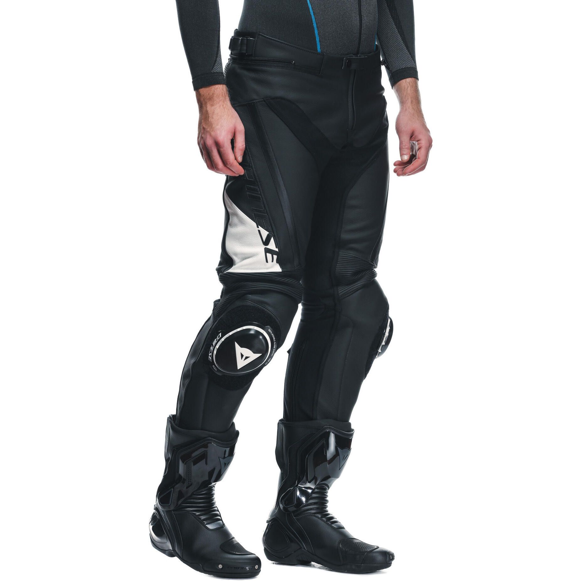 The Delta 4 are motorcycle pants in Tutu cowhide leather that integrate inserts in S1 stretch fabric – just like the Racing 4 and Avro 5 jackets, which they perfectly complement and easily attach to via a convenient zipper.