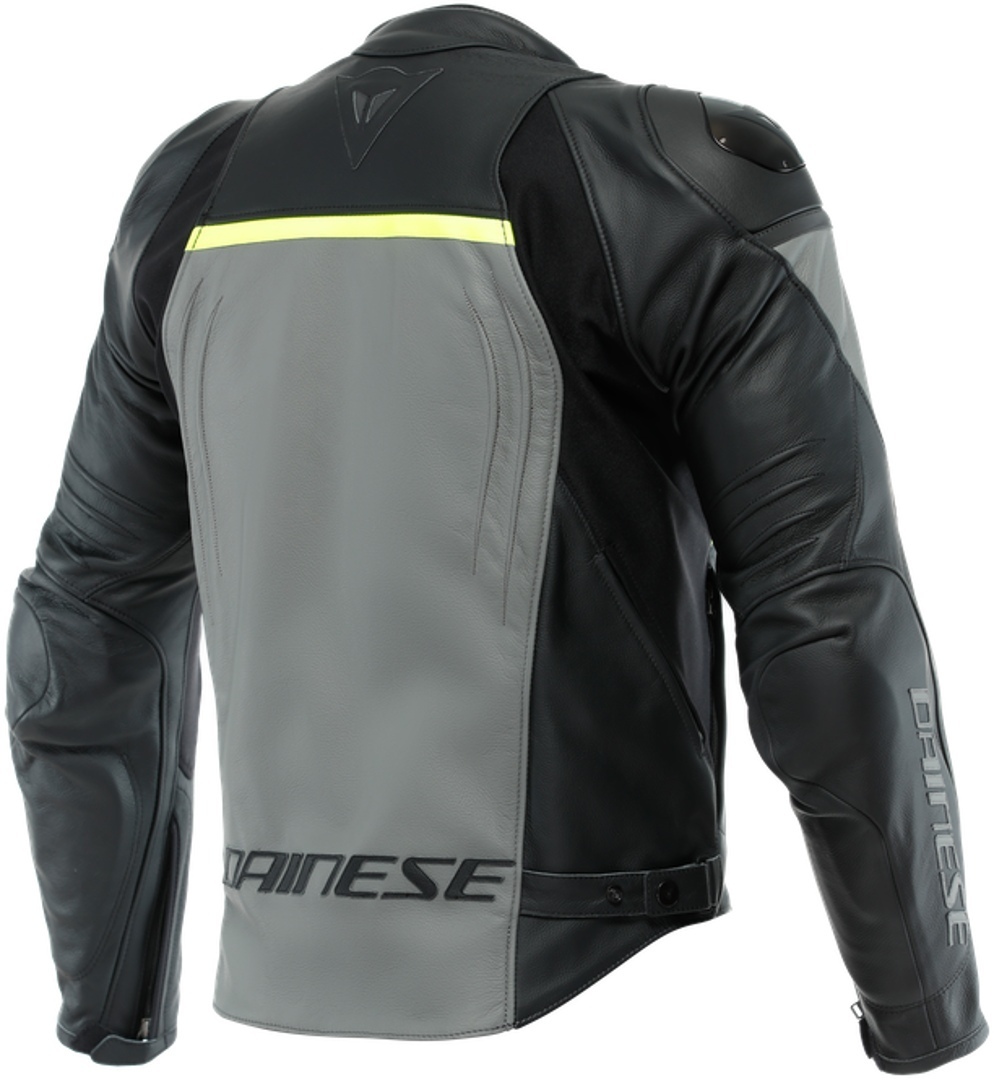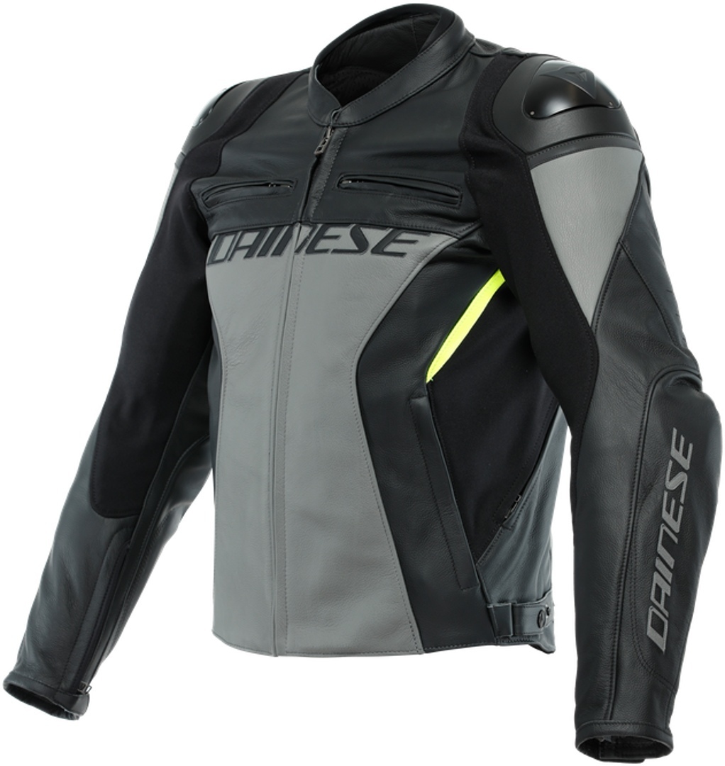 The Dainese Racing 4 leather motorcycle jacket, an iconic piece of the Dainese collection, with an athletic and tight fit to take you through sports riding. Made of premium Tutu cowhide with Nanofeel lining, it is equipped with four air vents, two on the sides and two on the chest, to offer optimized temperature.
