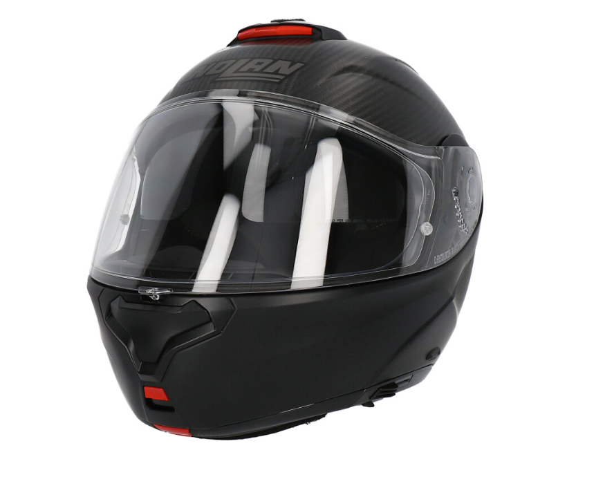 X-Lite X-1005 Ultra Carbon Dyad N-Com Helmet Matte Carbon / Matte Black. Modular touring helmet that incorporates advanced technology. Made of carbon fiber, it has a clear « Ultrawide » screen, a ventilation system with air inlets in the chin guard, upper front and rear. “Carbon Fitting Racing Experience” interior padding and the new LPC system. It has P/J approval to circulate in total safety both with the helmet closed in full-face mode and with the helmet open in jet mode.